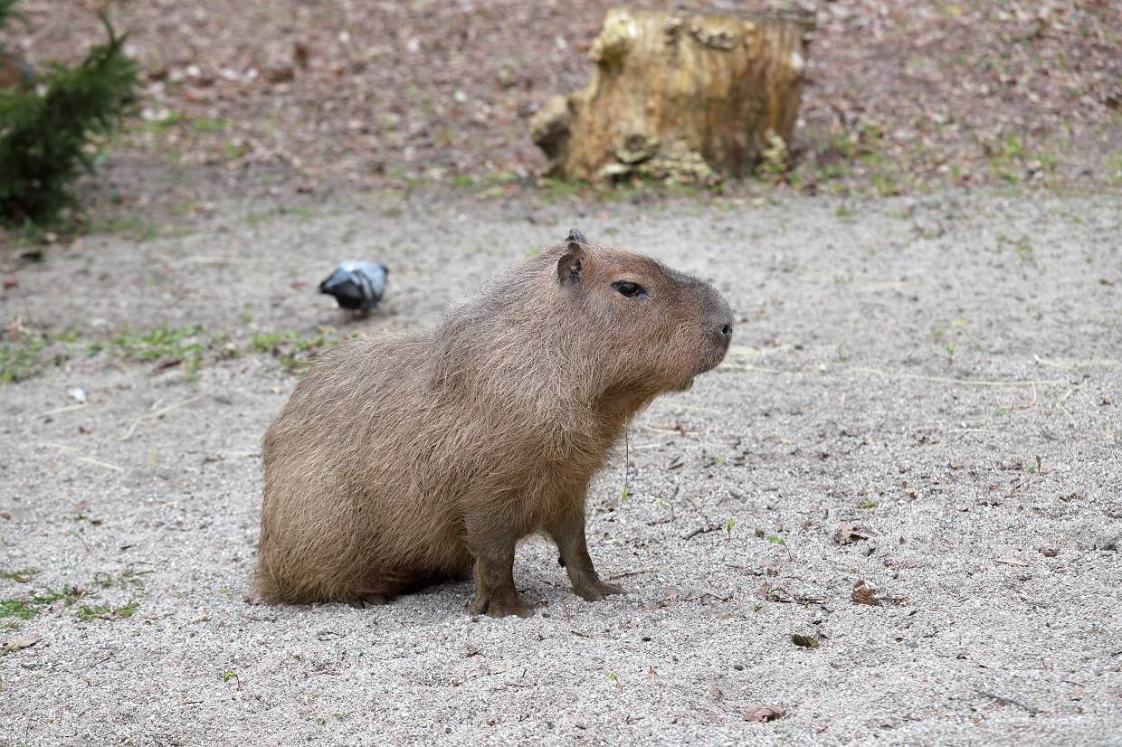 Капибары – отличные пловцы и заядлые купальщики, поэтому у них целых два бассейна – в уличном вольере и в помещении.